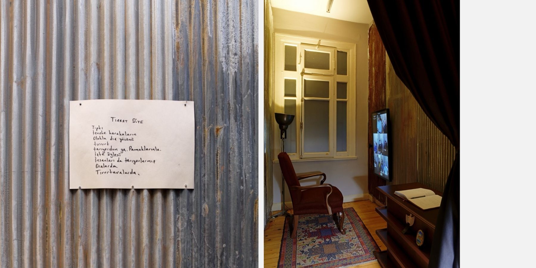 Hrant Dink'in "Tırrrt Diye" şiiri ve 23,5 Hafıza Mekânı'ndaki Tırtava odasının görünümü.
