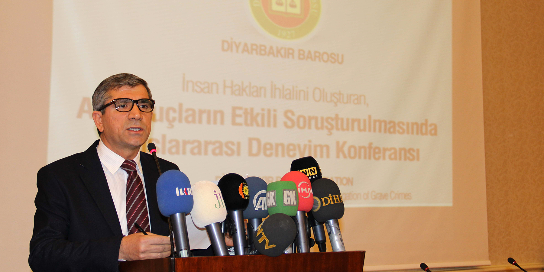 Tahir Elçi, Diyarbakır Barosu konferansında, 11 Ocak 2014. Fotoğraf: Diyarbakır Barosu Arşivi