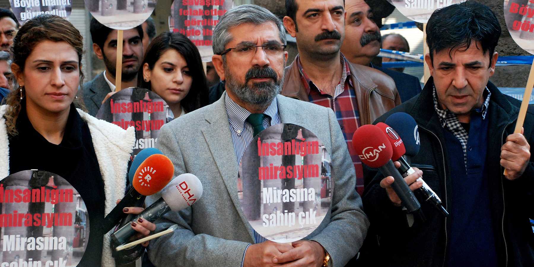 Tahir Elçi, kültürel mirasa da yönelen saldırılara dikkat çekmek ve çatışmasızlık çağrısı yapmak için şehrin sembolü Dört Ayaklı Minare önünde basın açıklaması yapmaya (…) karar verdi. İnsan haklarının ne kadar geniş bir alanı kapsadığının, yalnızca hukuki değil, toplumsal barış için de vazgeçilmez olduğunu farkındaydı. Kültürel haklarla çatışmaların iç içe geçtiğini anlatmak, savaşın bir başka yüzünü göstermek, savaş ve haklar arasında kurduğu bağ üzerine kamuoyunu düşünmeye davet etmek istiyordu. (s. 170-171)