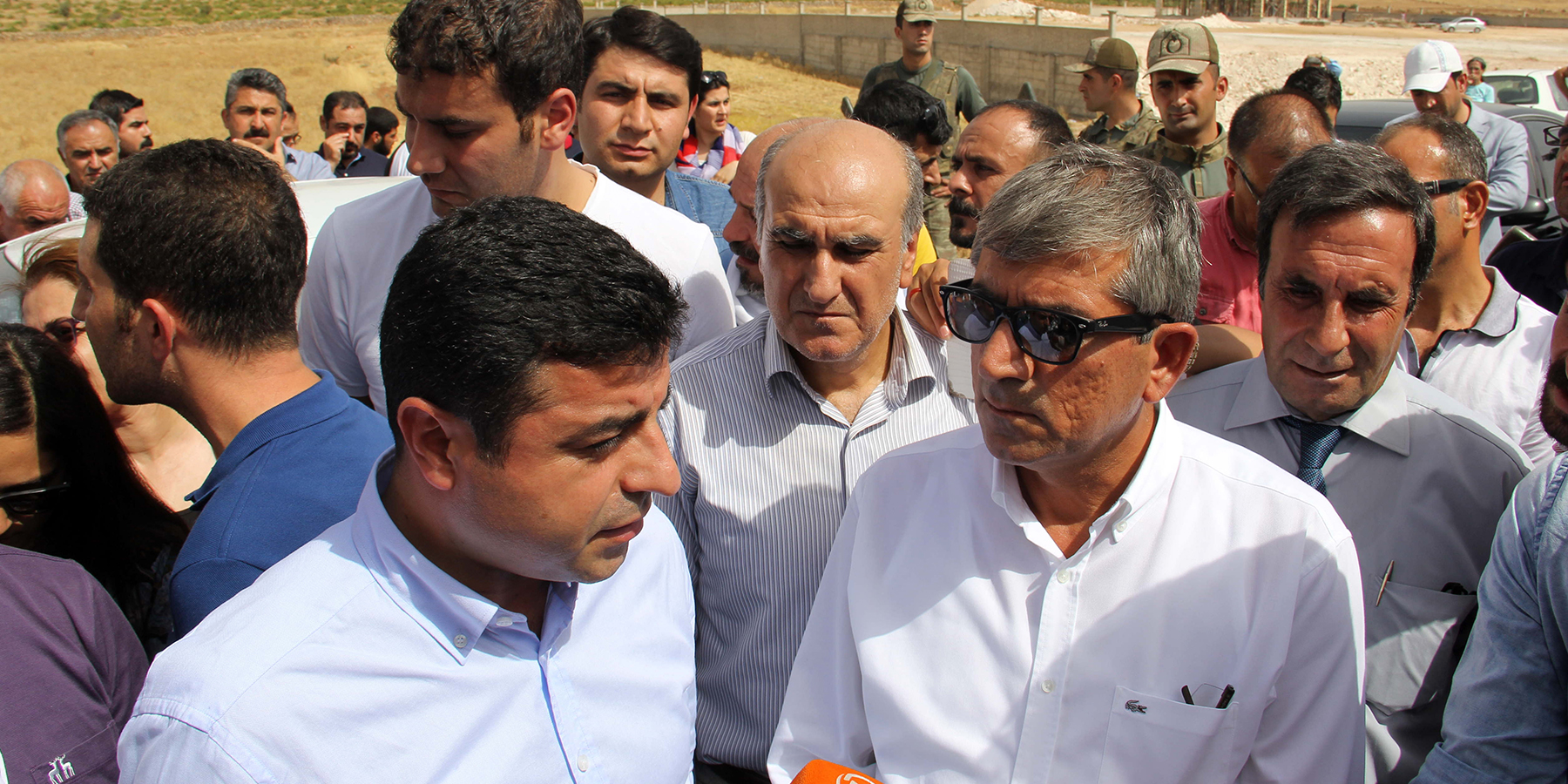 Tahir Elçi ile Selahattin Demirtaş, Cizre’de sokağa çıkma yasağına karşı avukatların eyleminde, 11 Eylül 2015. Fotoğraf: Diyarbakır Barosu Arşivi