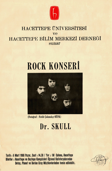 6 Mart 1988’de Hacettepe Üniversitesi’nde yapılan Dr. Skull konserinin afişi.