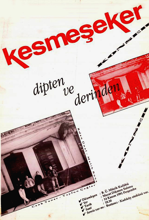 14 Kasım 1991’de Boğaziçi Üniversitesi’nde yapılan Kesmeşeker konserinin afişi.