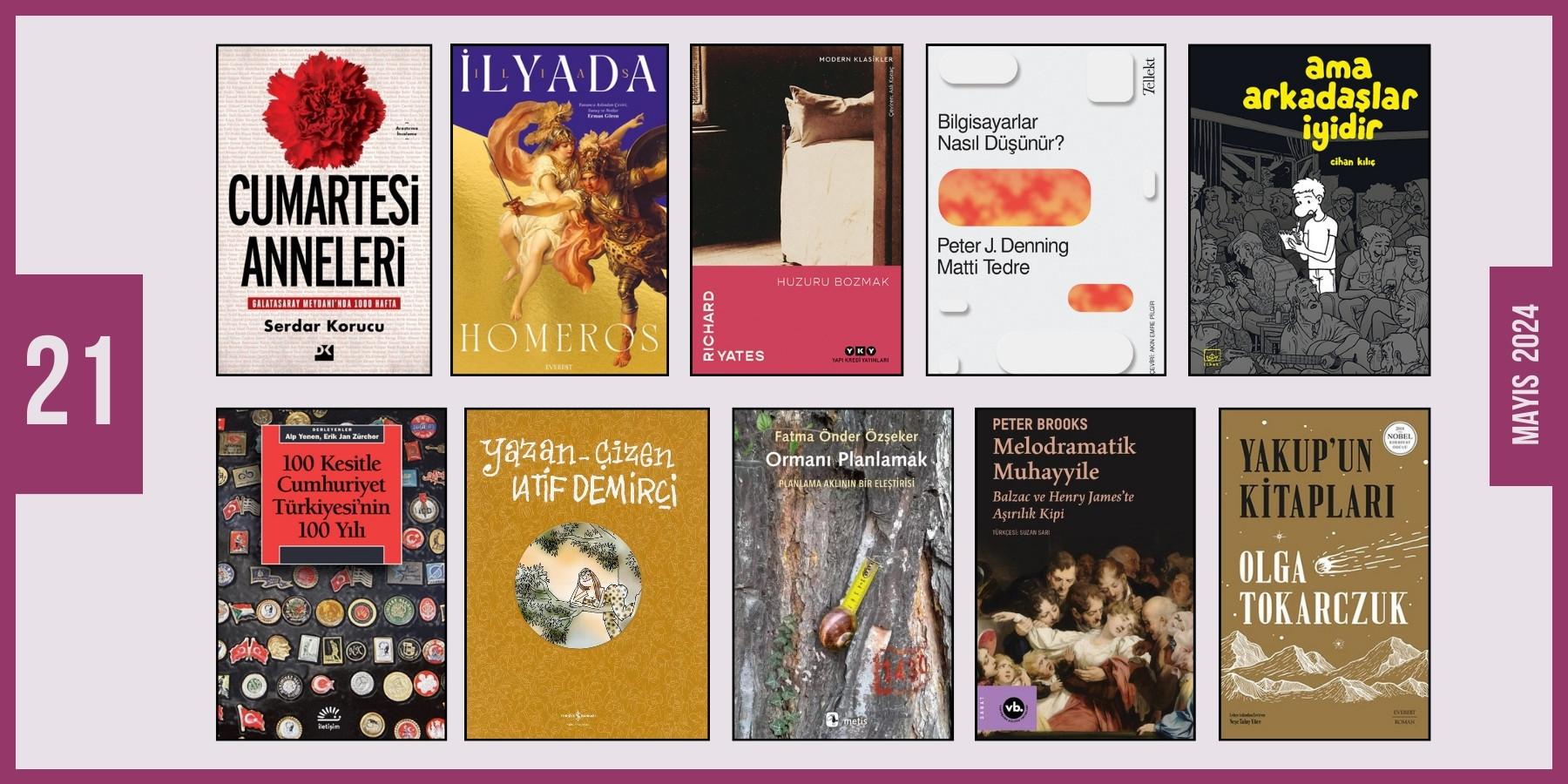 Yeni çıkan, yeni baskısı yapılan, yayınevlerince bize gönderilen, okumak ve üzerine yazmak için ayırdığımız bazı kitaplar: 100 Kesitle Cumhuriyet Türkiyesi'nin 100 Yılı / Ama Arkadaşlar İyidir / Bilgisayarlar Nasıl Düşünür? / Cumartesi Anneleri/ Huzuru Bozmak / İlyada / Melodramatik Muhayyile/ Ormanı Planlamak / Yakup’un Kitapları / Yazan-Çizen Latif Demirci