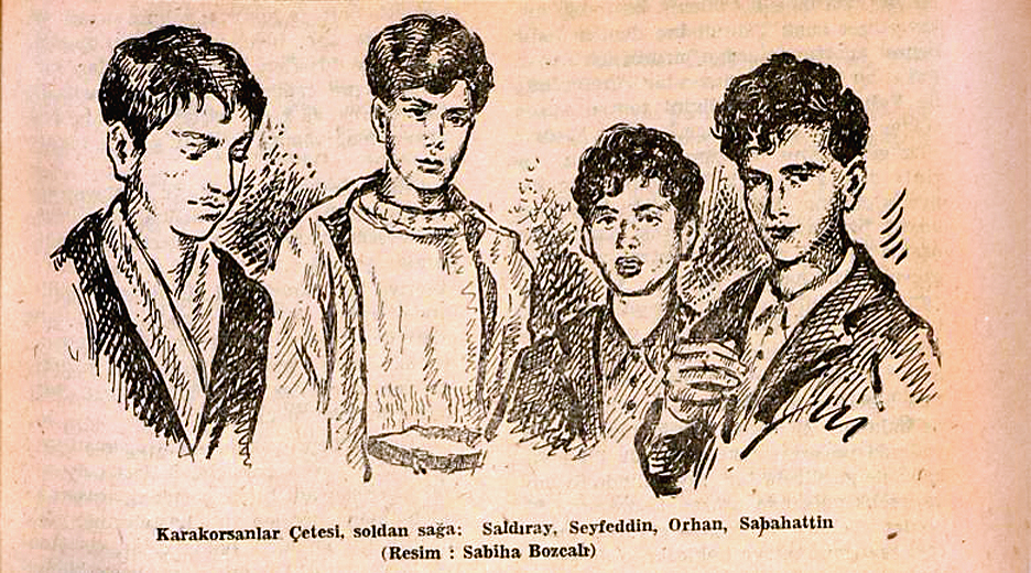 İstanbul Ansiklopedisi’nde “Karakorsanlar Çetesi”. Resim: Sabiha Bozcalı, 1966. SALT Araştırma Arşivi