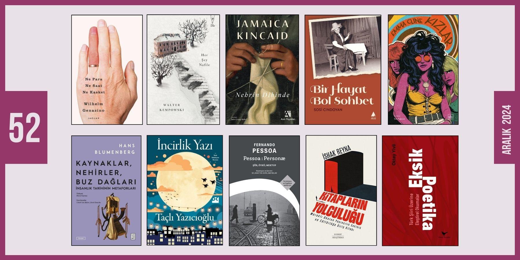 Yeni çıkan, yeni baskısı yapılan, yayınevlerince bize gönderilen, okumak ve üzerine yazmak için ayırdığımız bazı kitaplar: Bir Hayat Bol Sohbet / Eksik Poetika / Her Şey Nafile / İncirlik Yazı / Kaynaklar, Nehirler, Buzdağları / Kitapların Yolculuğu / Kızlar / Ne Para Ne Saat Ne Kasket / Nehrin Dibinde / Pessoa:Personæ