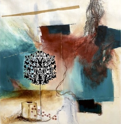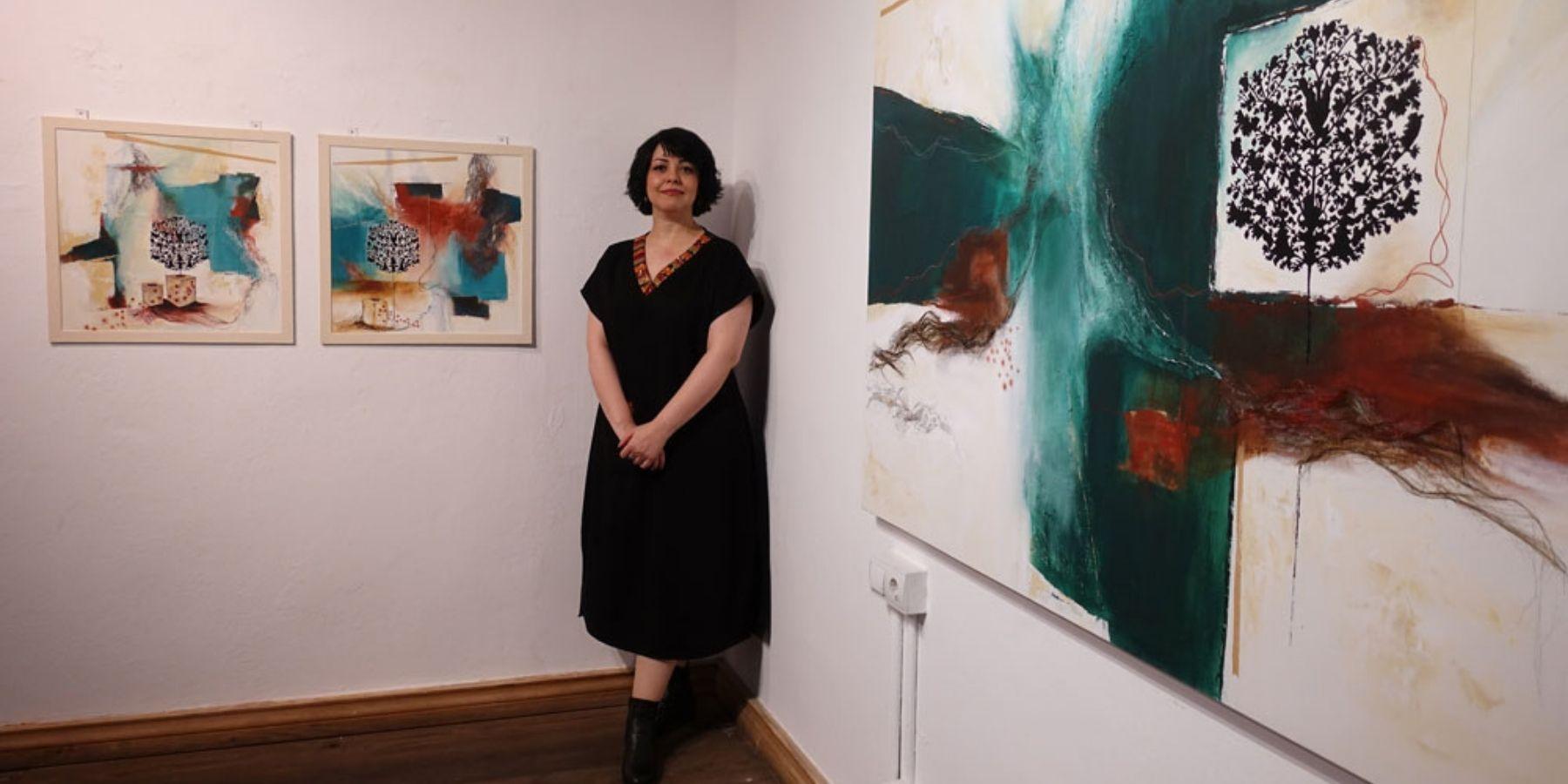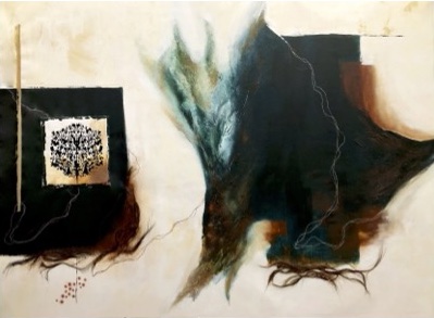 Serginin genel fikri yeni bir şey değil benim için. Ben uzun zamandır “bizim ortak anılarımız” dediğim bu yaralarla yaşıyorum resimlerimde. Saçlar benim her zaman kullandığım dokuların yanında ve o kestiğim ağaç köklerinde, doku ve şekil olarak çok güzel durdu ve oturdu. Diğer taraftan da bu saçlar gerçekten sevdiğim, hayat dolu insanların bir parçası olarak benim bu ölü ağaçlarıma can olsunlar istedim. Aslında bu son seri, tüm bu detaylarla birlikte güncel bir göndermeye dönüştü benim ve eserlerim için.