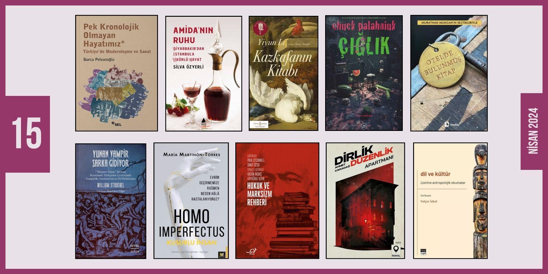 Yeni çıkan, yeni baskısı yapılan, yayınevlerince bize gönderilen, dikkatimizi çeken; okumak ve üzerine yazmak için ayırdığımız bazı kitaplar: Amida’nın Ruhu / Çığlık / Dil ve Kültür / Dirlik Düzenlik Apartmanı / Homo Imperfectus / Hukuk ve Marksizm Rehberi / Kazkafanın Kitabı / Otelde Bulunmuş Kitap / Pek Kronolojik Olmayan Hayatımız / Yunan Vampir Şarka Gidiyor