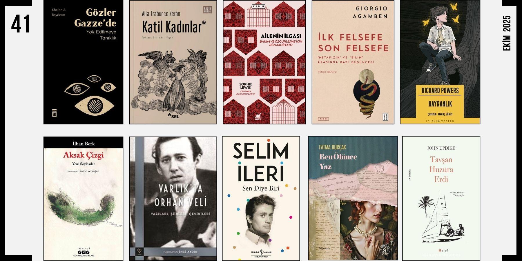 Yeni çıkan, yeni baskısı yapılan, yayınevlerince bize gönderilen, okumak ve üzerine yazmak için ayırdığımız bazı kitaplar: Ailenin İlgası / Aksak Çizgi / Ben Ölünce Yaz / Gözler Gazze’de / Hayranlık / İlk Felsefe Son Felsefe / Katil Kadınlar / Sen Diye Biri / Tavşan Huzura Erdi / Varlık’ta Orhan Veli