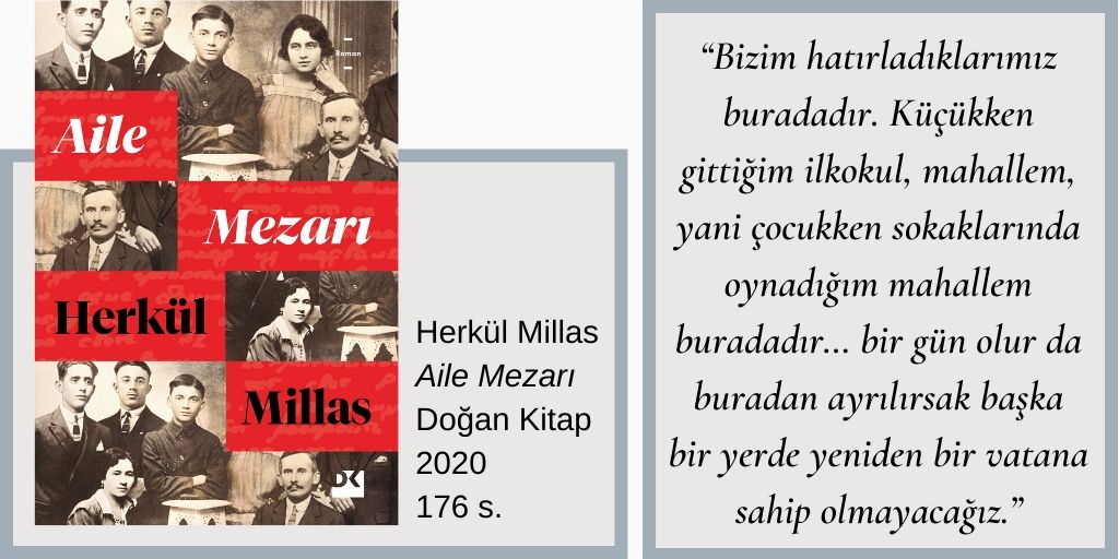 "Kendisi de İstanbul Rum cemaati içinde büyüyen Herkül Millas’ın Aile Mezarı adlı romanı, aileye dair zeki, komik ve hepimize tanıdık gelecek ayrıntılarla dolu. Evlerimize çekildiğimiz ve aile büyüklerimizle haşır neşir olduğumuz; ölüm, mezar, cenaze gibi konuların aklımızı her zamankinden daha çok meşgul ettiği şu karantina günleri, Aile Mezarı’nı okumanın tam zamanı."
