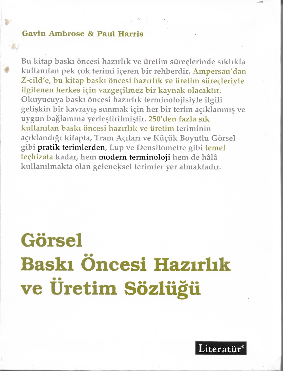 Bu sözlükle birlikte kitaplığınıza eklemenizi önereceğim diğer sözlük de Görsel Grafik Tasarım Sözlüğü. Hazır elime almışken son maddelerinden birini size sorarak bitireyim: “Z Cilt nedir?”