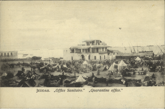 Abdülhamid’in Hicaz bölgesine yaptığı imaretler karantina önlemlerini de kapsıyordu. 24 Aralık 1891’de Osmanlı topraklarındaki karantina merkezlerinin iyileştirilmesi kararını Murat Bardakçı köşe yazısında paylaşmıştır.[10] Vebanın olduğu senelerde karantina sadece hacdan, Hicaz bölgesinden gelenlere değil, hac için dünyanın farklı bölgelerinden gelen hacılara Cidde şehrinde de uygulanıyordu. Murat Kargılı’nın koleksiyonundaki Cidde karantina merkezi fotoğrafı bu uygulamaya bir örnek teşkil eder.