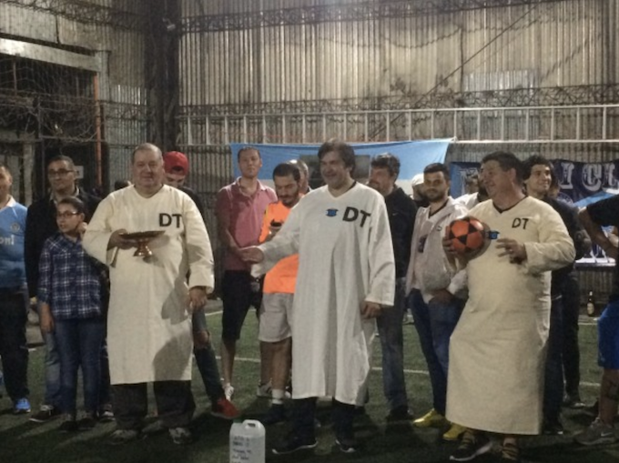 Üstteki resimde Santa Maradona Kilisesinin "kutsal emanetleri". Altta, Santa Maradona havarileri vaftiz töreninde. Eğleniyorlar mı, inanıyorlar mı, yoksa ikisi birden mi?