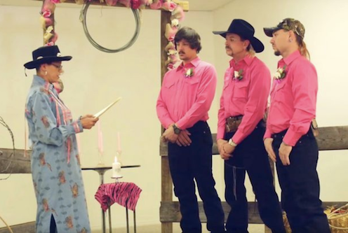 Kaplan Kral Joe Exotic’in aynı anda iki genç erkekle evlendiği düğününden bir kare.