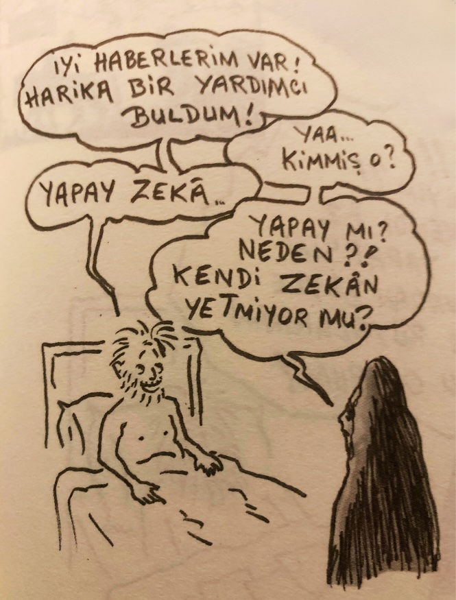 Normalde böyle bir kitabı çevirmeye kalkışan kişinin daha önce çevrildiğini öğrenince pes etmesi beklenir, gelgelelim öyle olmamış. Kitabın hazırlanma hikâyesinin devamını aktarmayacağım, ama en başta Rozental’ın bu kitabı “yazıp, çizip çevirdiğini” söylememden anlaşılmıştır; Talihsiz Anjel Hala ve Edirne Kuşatması Günleri çizgili bir kitap, bir grafik roman. İzel Rozental’ın karikatürist olduğunu bilenler için bunun hiç şaşırtıcı olmadığını tahmin ediyorum.