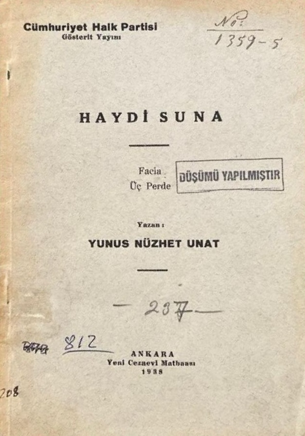 [4] Yunus Nüzhet Unat, Haydi Suna, Yeni Cezaevi Matbaası, Ankara, 1938, s. 29.