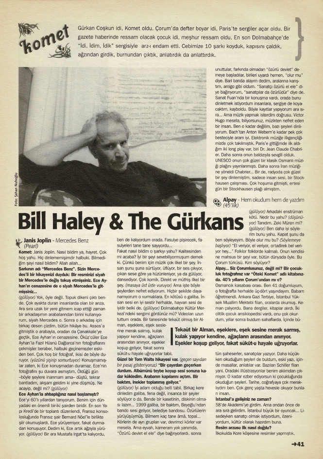 [7] Komet’in yitirdiği sevdiklerini listelediği “Bitmeyen Şiir” başlıklı şiirden.