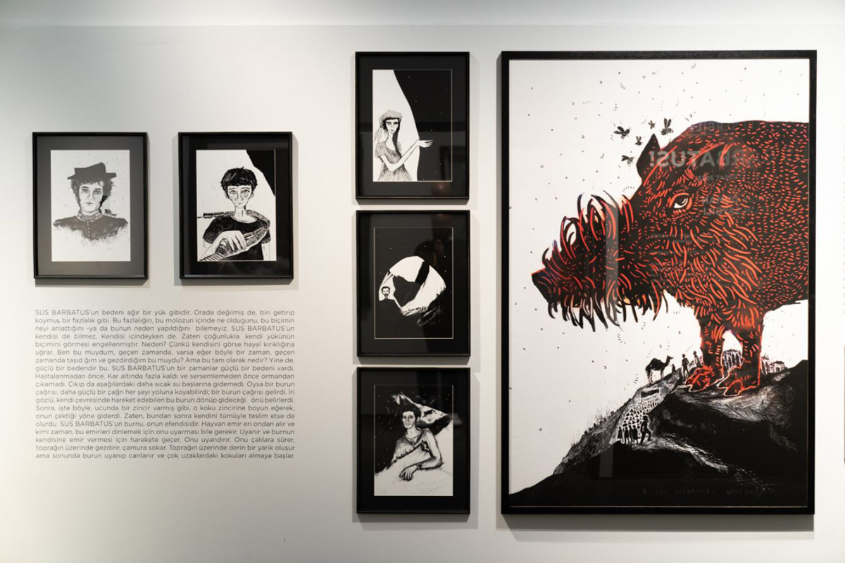 Sus Barbatus! sergisinden. 15 Ocak-27 Şubat 2022. Küratör: Elif Erdoğan. Sanatçılar: Faruk Duman, Selin Saygılı