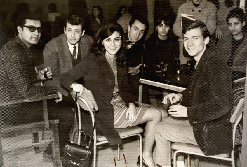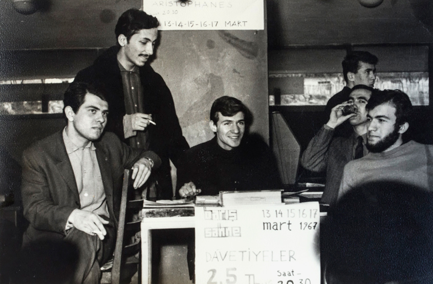 Mart 1967’de Arkadaş Z. Özger (ortada) arkadaşlarıyla birlikte Aristophanes’in oyun biletlerini satarken.