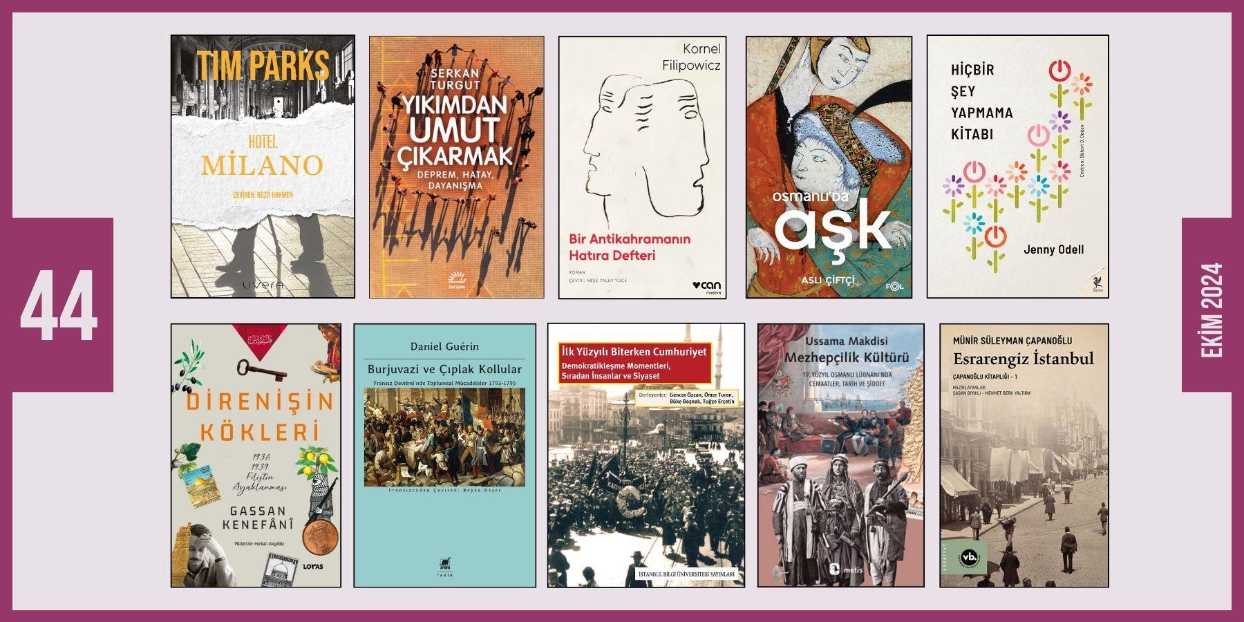 Yeni çıkan, yeni baskısı yapılan, yayınevlerince bize gönderilen, okumak ve üzerine yazmak için ayırdığımız bazı kitaplar: Bir Antikahramanın Hatıra Defteri / Burjuvazi ve Çıplak Kollular / Direnişin Kökleri / Esrarengiz İstanbul / Hiçbir Şey Yapmama Kitabı / Hotel Milano / İlk Yüzyılı Biterken Cumhuriyet / Mezhepçilik Kültürü / Osmanlı’da Aşk / Yıkımdan Umut Çıkarmak