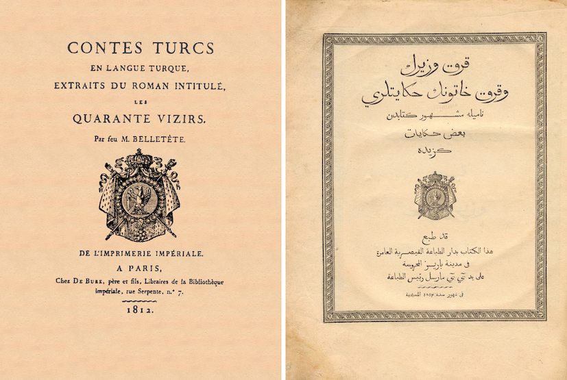 İslâm âleminde hilebaz kadınların merkezî bir rol oynadığı edebî eserler arasında Yûsuf ve Züleyhâ, Binbir Gece Masalları, Sindibâd-nâme, Mekr-i Zenân, Kırk Vezir Hikâyeleri gibi çok tanınmış, birçok defa yazılmış, istinsah edilmiş, basılmış olanları vardır. Bu yazıda Kırk Vezir Hikâyeleri’nin 19. yüzyıl başlarında Fransa’da Osmanlı harfleriyle yayınlanmış olan gayet nadir bir matbu nüshasından söz edeceğim.