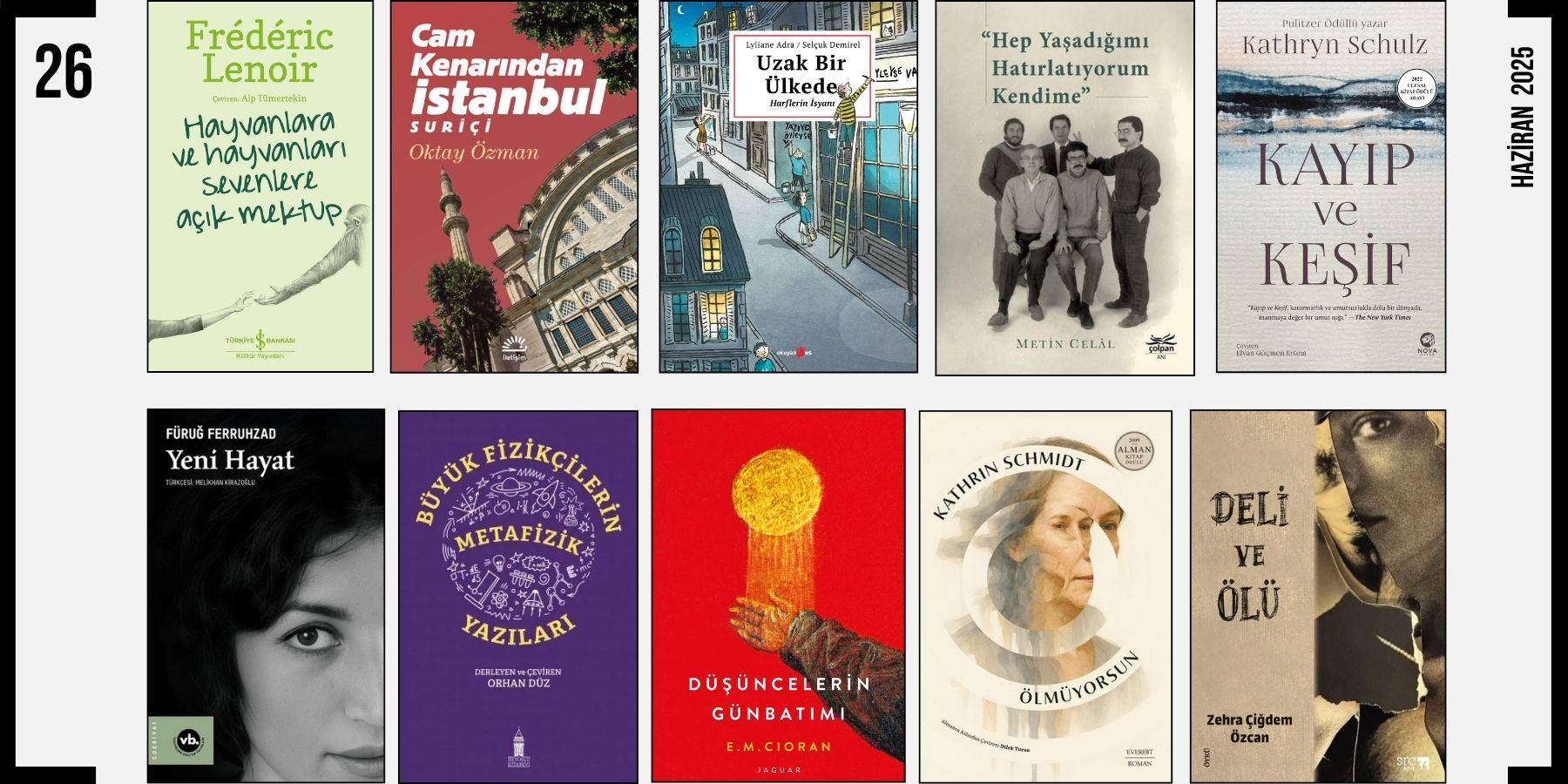 Yeni çıkan, yeni baskısı yapılan, yayınevlerince bize gönderilen, okumak ve üzerine yazmak için ayırdığımız bazı kitaplar: Büyük Fizikçilerin Metafizik Yazıları / Cam Kenarından İstanbul / Deli ve Ölü / Düşüncelerin Günbatımı / Hayvanlara ve Hayvanları Sevenlere Açık Mektup / “Hep Yaşadığımı Hatırlatıyorum Kendime” / Kayıp ve Keşif / Ölmüyorsun / Uzak Bir Ülkede / Yeni Hayat