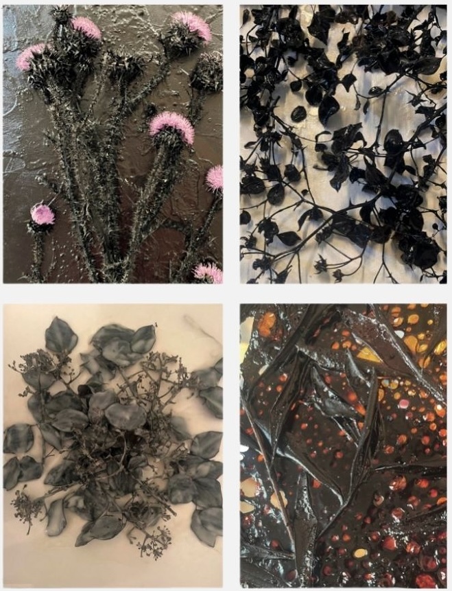 Elvan Alpay’ın yapıtlarında beliren ögeler —yusufçuk, mantar, yaprak, kömür, diken, çiçek— birer semboller sözlüğü değildir, onlar, maddeye dair bir dilbilgisi oluşturur. Bunlar çözümlenmeyi bekleyen alegoriler değil; davranış alanlarıdır. Her seçilmiş varlık, dönüşümün farklı bir kipini (modunu), phûsis’in geniş sözdizimi içinde ayrı bir unsuru temsil eder.