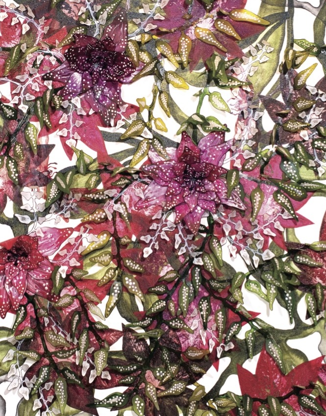 Ve çiçek… Sanat tarihinin en fazla yük taşımış imgesidir: Ortaçağ elyazmalarından Hollanda natürmortlarına, Cy Twombly’nin Güller dizisinden Anselm Kiefer’in yanık ayçiçeklerine kadar. Alpay, çiçeği klişeden kurtarır; ona maddî zekâsını geri verir. Onun çiçekleri, güzelliğin estetize edilmiş simgeleri değil, kimyasal “cereyan”lardır. Akrilik ya da cam tozuna bulanmış taç yapraklar, fotosentez hâlâ sürüyormuş gibi ışığı kırar. Rengin sadece bir görünüş değil, bir tepkime olduğunu —ışığın maddeyle karşılaşması olduğunu— hatırlatırlar. Böylece çiçek, algının küçük bir laboratuvarına dönüşür: Fiziğin duyuyla buluştuğu bir nokta.