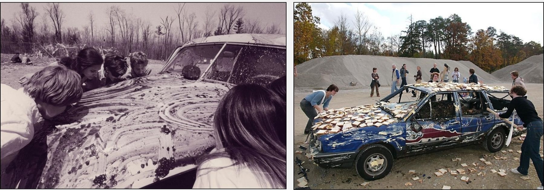 Ama böylesi bir sanat nasıl mümkün olur? Böylesi bir hayat nasıl mümkün olur? Kaprow’un da belirttiği gibi, böylesi bir şey artık ne biri ne de ötekidir, ki amaçlanan da budur. Bir örnekle düşünecek olursak: Yard, nitekim, bir galerinin (Martha Jackson Gallery) arka avlusunun tamamen lastiklerle doldurulması ve bu lastikler üstünde katılımcıların devinmesinden oluşarak, hayatta olası ama ancak “sanatsal bir dokunuş”la mümkün duran bir “durum”u açığa çıkarır. Ya da Fluids, katılımcılar tarafından yan yana yerleştirilen buz küplerinden ve onların erimesinin izlencesinden başka bir şey olmayarak, hayatta verili bir durumu duyumun nesnesi kılar. Her iki durumda da sanat dışarıdadır ama hayat da olağandışı bir durumun sahası olarak vardır, mevcuttur; sezilir bir atmosfer halinde.
