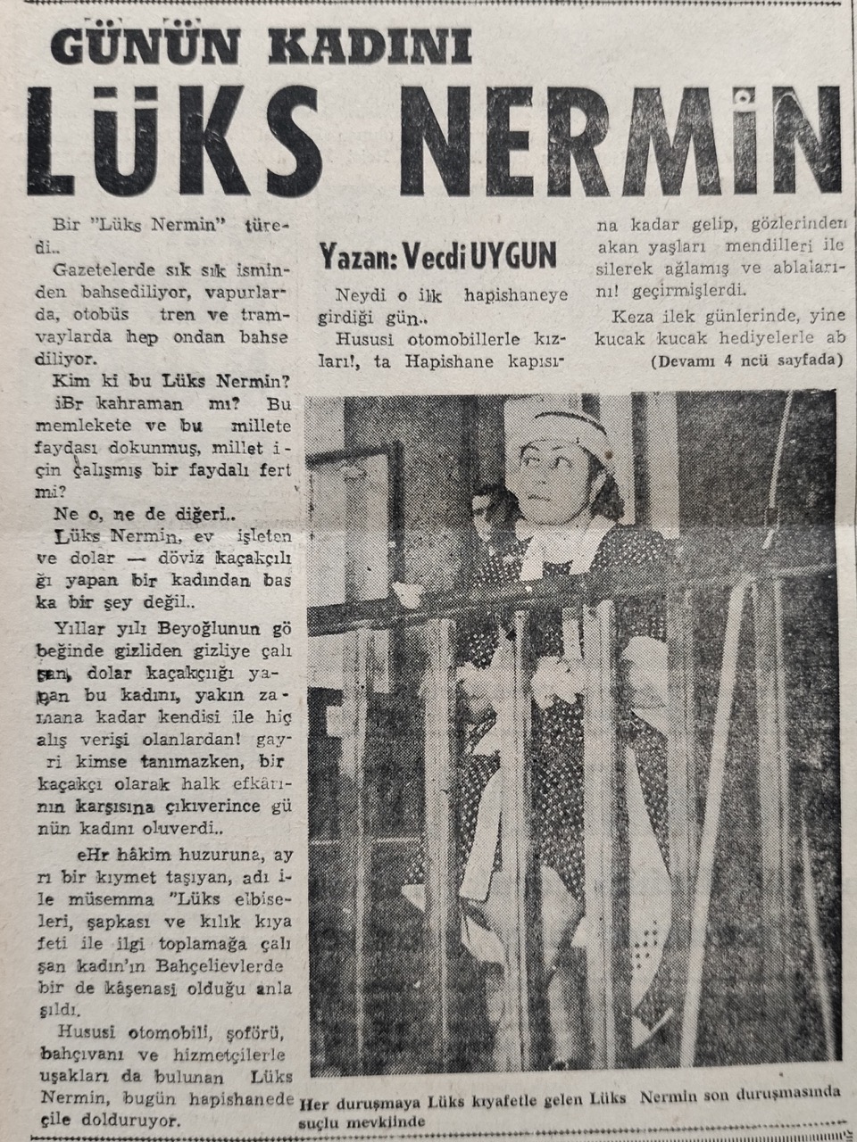 Birkaç yıl önce bir proje için hayatını araştırdığım Lüks Nermin’in Karlıklı tarafından ete kemiğe büründürüldüğünü öğrenince sevinçten havalara uçtum. Sonunda Lüks Nermin hakkında daha çok şey öğrenecektim. Özellikle Demokrat Parti iktidarında palazlanmış, ancak yine bu iktidarın son senesinde akıl almaz bir şekilde mahkemelerde ve hapislerde süründürülmüştü Nermin Hanım.