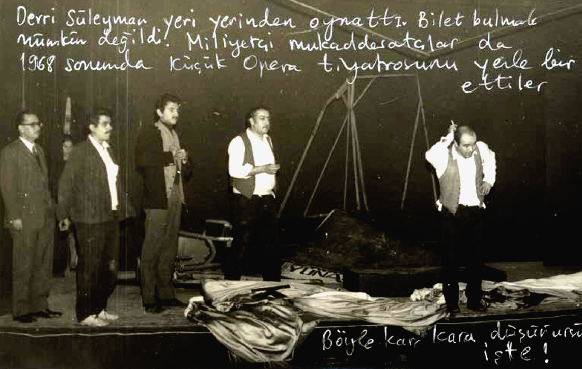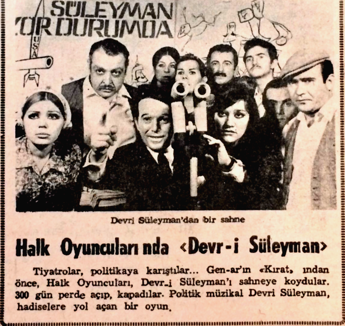 Süleymaniye muhtarı Süleyman’ın maceralarını anlatan Devr-i Süleyman, elbette iktidar yanlısı kuruluş ve kişilerden büyük tepki almıştı. Bunlardan biri de 1968’de İstanbul, Yusufpaşa’da bulunan Aksaray Küçük Opera Tiyatrosu’nda oynanırken yapılan saldırıydı. Oyunun sonuna doğru salonu basan “kimliği meçhul” kişiler, taş ve sopalarla oyuncu ve seyircilere saldırırlar, dekoru parçalayıp ikisi seyirci, ikisi oyuncu dört kişiyi yaralarlar. O gece yine bu “kimliği meçhul” kişiler hızlarını alamayarak salonu ateşe verirler. Tahmin ettiğiniz gibi, kül olan tiyatronun suçluları hâlâ “faili meçhul” dosyasındadır. Arayan olmuş muydu, bilemiyoruz!
