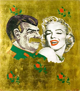 Stalin’i eserlerinde malzeme yapan sanatçılardan biri de Leonid Sokov’dur. Warhol’un Marilyn Monroe’sunu Stalin ile montajlayan sanatçı, pop-art’a benzer bir çalışma ortaya koyar. Stalin’in Sovyet eleştirisi içinde neden bu kadar popüler olduğunu sanırım tahmin edebilirsiniz. Bildiğiniz üzere, Sovyet eleştirisi ve karşıtlığı sistemin totaliterliğinin yarattığı bir sonuçtur. Sovyet tarihinde totaliterlik denilince herkesin aklına ilk olarak akla Stalin geliyor, şüphesiz…