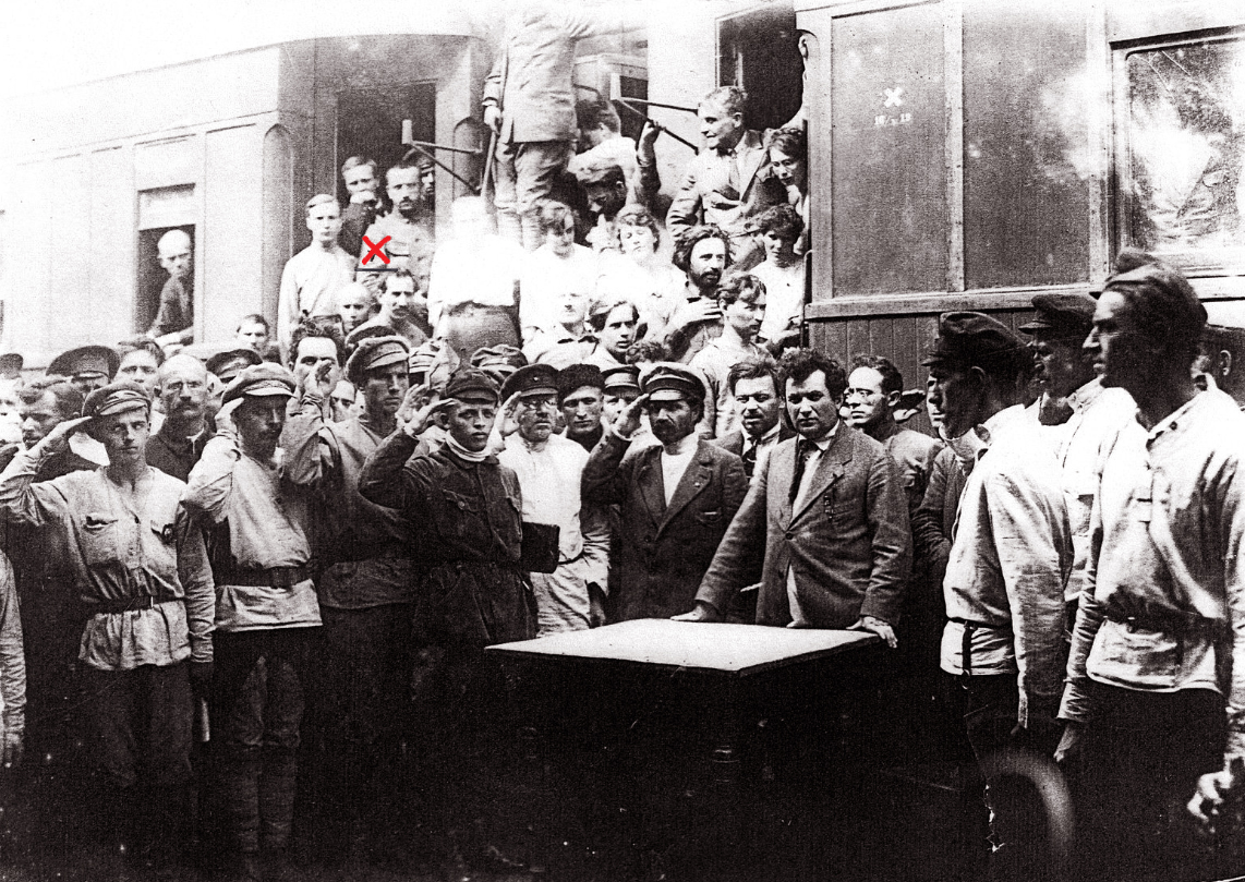 Mustafa Suphi (işaretli), 1- 8 Eylül 1920 tarihleri arasında yapılan Bakü Doğu Halkları Kurultayı'na giden trende... Fotoğraf: TÜSTAV Arşivi