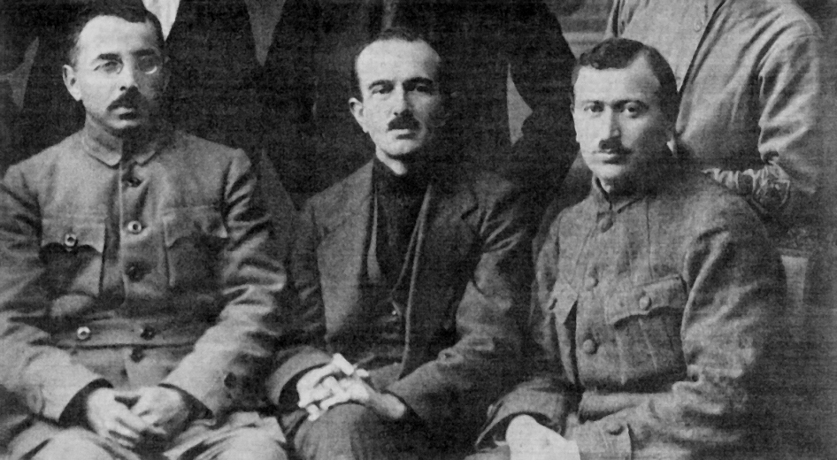 Türkiye Komünist Partisi kurucuları: (Soldan sağa) TKP Merkez Heyeti Reisi Mustafa Suphi, Kâtib-i Umumi Ethem Nejat ve Kayserili İsmail Hakkı