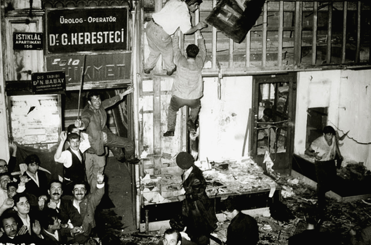 6-7 Eylül olayları sırasında objektiflere gülerek bakan yağmacılar. İstiklal Caddesi başta olmak üzere birçok semtte dükkânlar, mağazalar yıkılacak, yakılacak, yağmalanacaktır… 6-7 Eylül Olayları Fotoğraflar - Belgeler Fahri Çoker Arşivi / Tarih Vakfı Yayınları